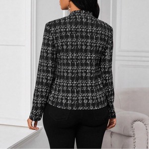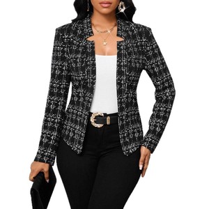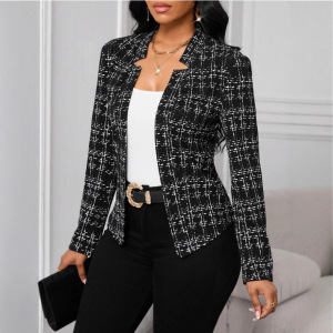 跨境外贸欧美女装亚马逊2025秋季简约时尚印花格纹修身西装小外套