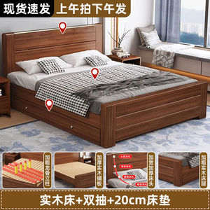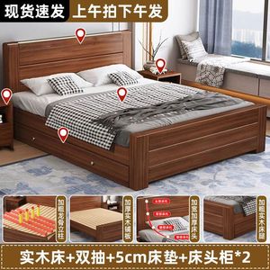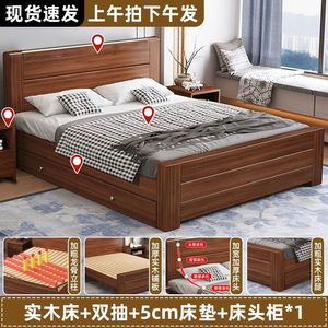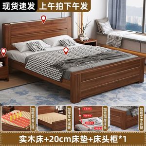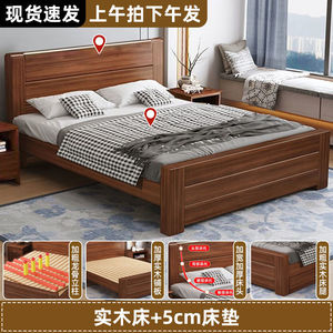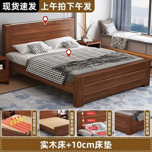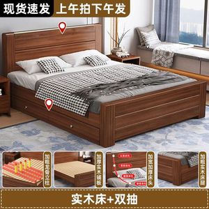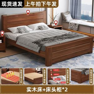 全实木床1.5米家用1.8米主卧双人大床小户型1.2m出租房单人床跨境
