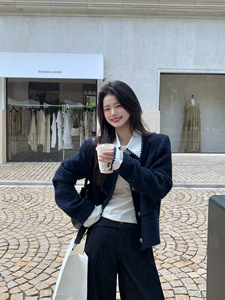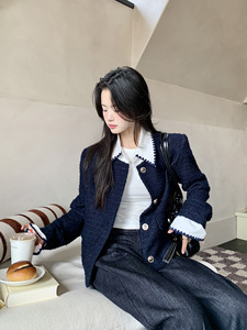 小仙倪子小香风外套女秋季超好看假两件撞色毛呢高级爆款毛呢上衣
