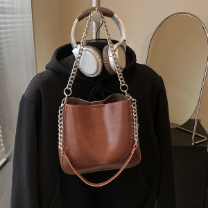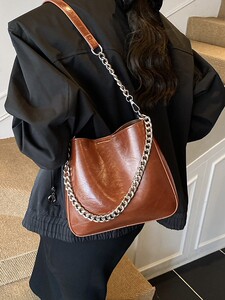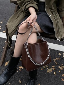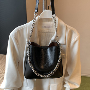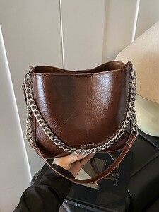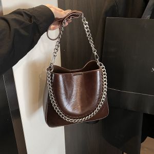 复古油蜡皮水桶包包女2025新款潮时尚链条腋下包高级感单肩斜挎包