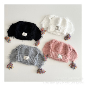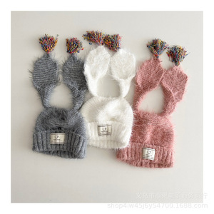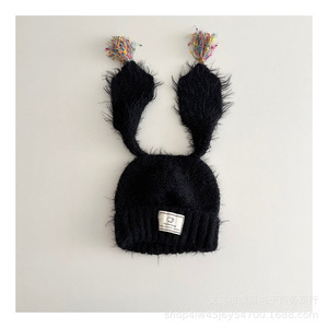 冬季网红博主同款长耳朵毛绒护耳针织帽青年大头围洋气凹造型帽子