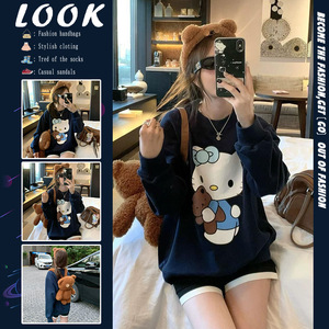 2025新款美式复古圆领卫衣女潮牌ins秋冬新款宽松慵懒学院风上衣