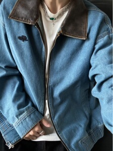 美式复古水洗做旧翻领卡哈特牛仔外套男女春秋冬宽松简约工装夹克