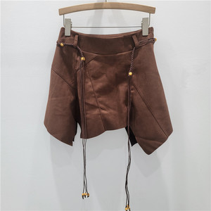 美拉德仿麂皮绒半身裙女2025秋季新款辣妹不规则A字高腰短裙