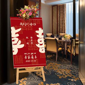 订婚迎宾牌新中式kt板指示牌架子布置装饰用品背景水牌高级迎宾板