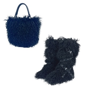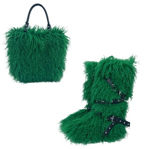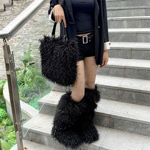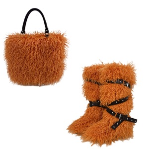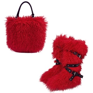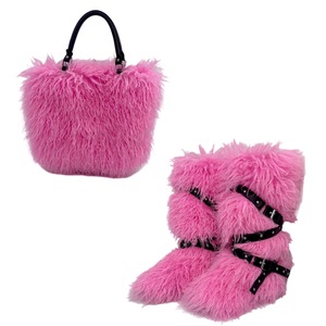 跨境新款仿滩羊皮草手提托特包包和平底皮带款皮草毛毛雪地靴套装