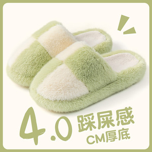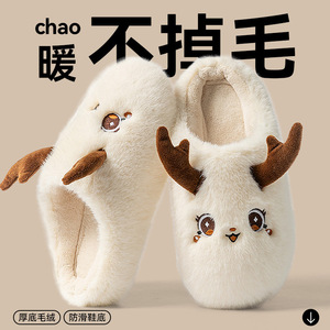 踩屎感棉拖鞋女款秋冬季2025新款室内家居厚底保暖加绒卡通棉拖男