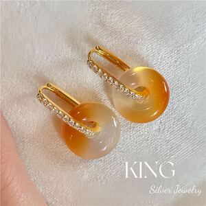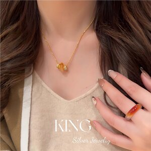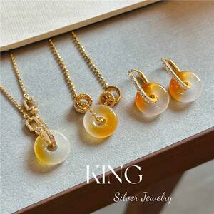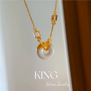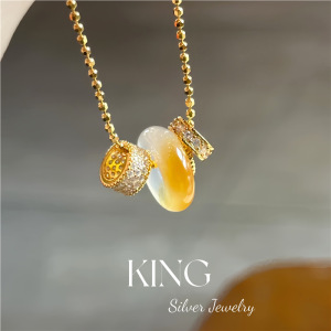 一口糖 | king银饰珠宝S925银镀金玉髓跑环甜甜圈新中式纯银项链
