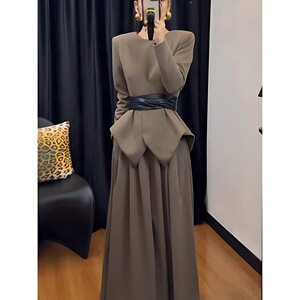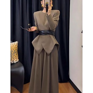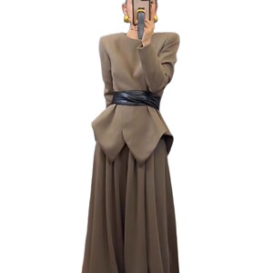 2025年新款冷淡系感御姐又a又飒棕色收腰西装上衣阔腿裤两件套