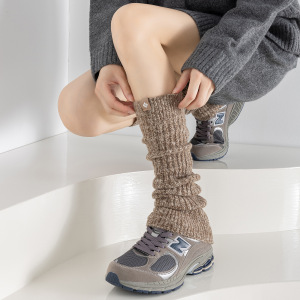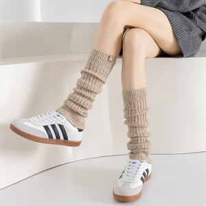 新款羊毛针织袜套女百搭灰色堆堆袜皮标韩系小腿袜秋冬保暖护腿套