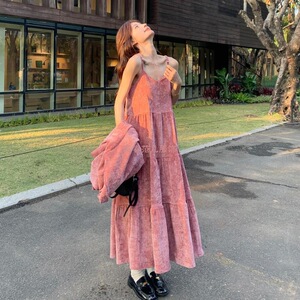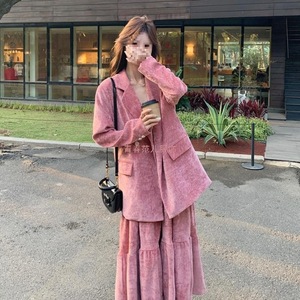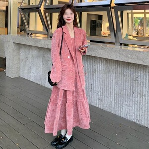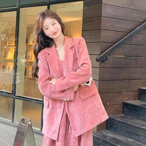 2025粉色大小姐西装春新款感时尚气质超好看减龄吊带裙套装