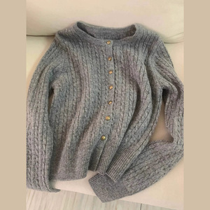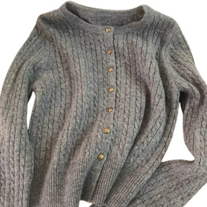 灰色麻花毛衣女秋冬季2025新款内搭加厚上衣软糯慵懒风开衫外套