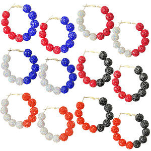 亚马逊货源钻球耳圈品质运动配色耳环橄榄球棒球篮球啦啦队饰品