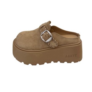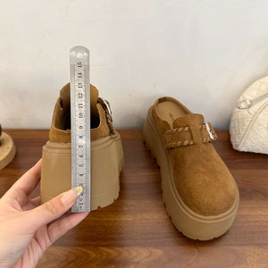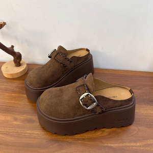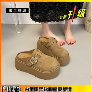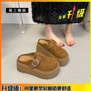 牛皮版厚底内增高7CM小个子勃肯包头半拖鞋女外穿一脚蹬乐福鞋女