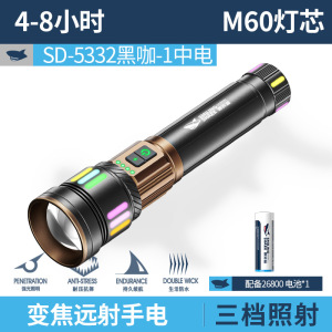SD-5332变焦强光手电【黑咖色;配1节26800电池4000MAH】