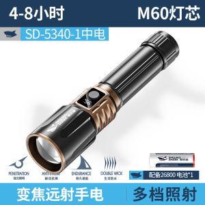SD-5340变焦强光手电【黑咖色;配1节26800电池4000毫安】