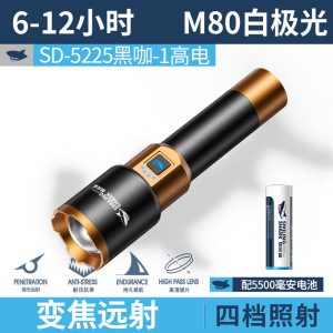 SD-5212变焦强光手电【黑金色;配1节26800电池5500毫安】