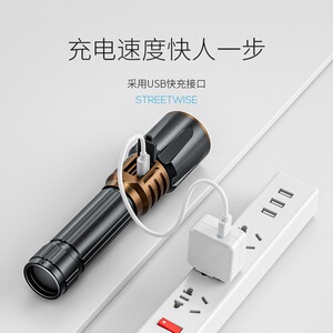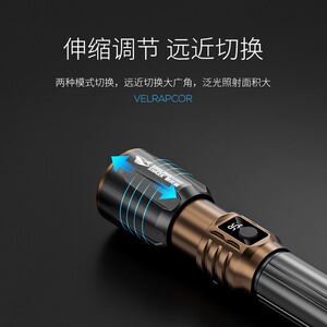 伸缩变焦强光手电筒白激光带电显手电筒多档调节铝合金手电筒