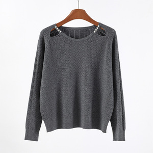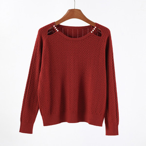 厂家批发针织上衣外套女修身亲肤内搭打底衫圆领镂空长袖短款毛衣