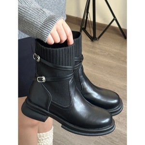 一脚蹬弹力靴袜靴中筒显瘦百搭中跟切尔西靴子烟筒靴短靴