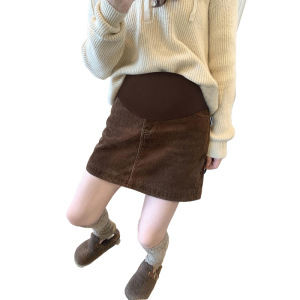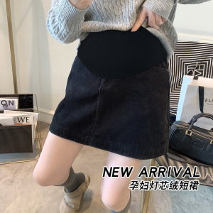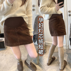 孕妇秋装短裙复古灯芯绒半身裙高腰托腹裙宽松显瘦包臀a字短裙冬