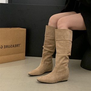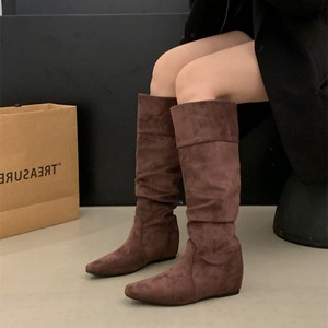 法式内增高麂皮过膝靴长筒弹力瘦瘦靴高筒袜子靴洋气小短靴女秋冬