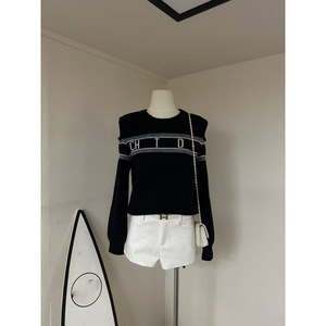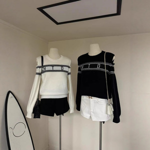 25年秋季新款迪家漏肩字母针织长袖圆领套头内搭外穿宽松百搭上衣
