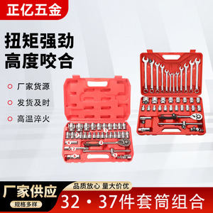 正亿32件套37件套装组套套筒扳手汽修工具镜面组套工具大全
