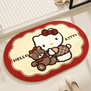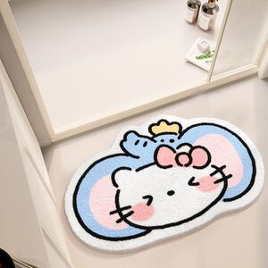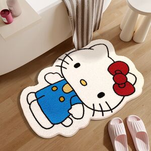 卡通凯蒂猫可爱防滑装饰地垫仿羊绒易打理卧室床边毯跨境现货批发