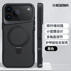 适用iPhone17promax碳纤维纹磁吸支架手机壳苹果16创意防摔保护套