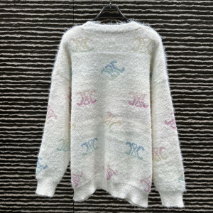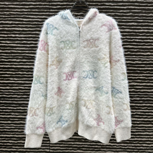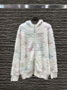 ce25秋冬新款慵懒感炫彩印花毛海马软糯V领开衫连帽开衫