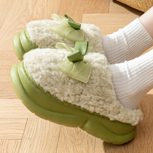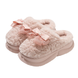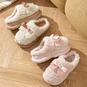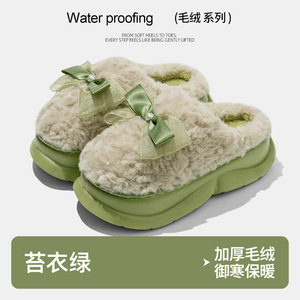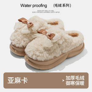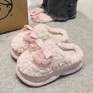 蝴蝶结棉拖鞋女士月子冬季保暖防滑室内居家2025新款毛毛拖鞋冬天