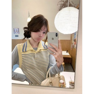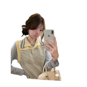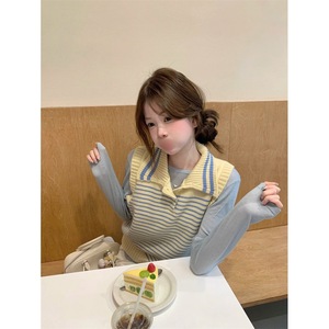 韩女氛围条纹冰淇淋无袖背心软糯温柔风简约2025翻领拼色条纹马甲