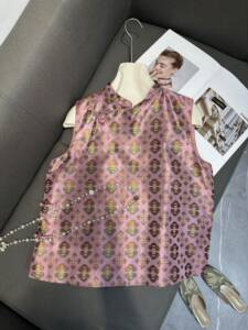 2025年秋款篙端时尚真丝蜀锦盘扣中式马甲优雅气质坎肩上衣不退换