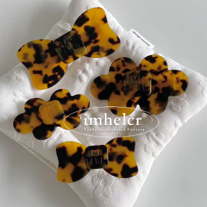 精致深琥珀色蝴蝶结花朵醋酸发夹韩系气质豹纹刘海夹碎发夹边夹女