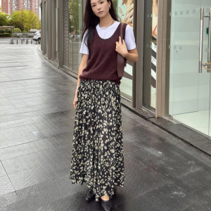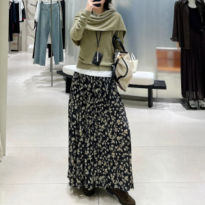 ED高圆圆同款天丝碎花长款半身裙女 2025年秋季新款半裙A字裙子