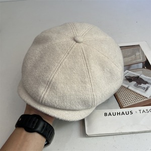 轻奢系羊毛呢八角鸭舌帽秋冬新款男女百搭画家帽子纯色复古前进帽