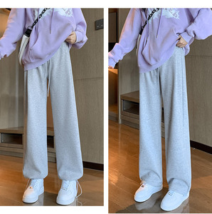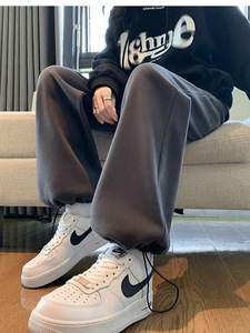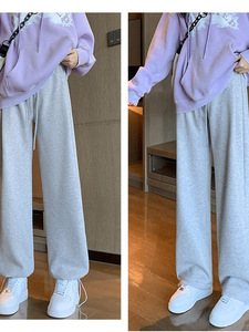 运动裤女春秋2025新款高腰休闲宽松直筒美式加绒阔腿白灰色卫裤子