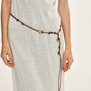 欧美新款 多种戴法天然石串珠镀金油蜡皮绳打结长款毛衣项链腰绳