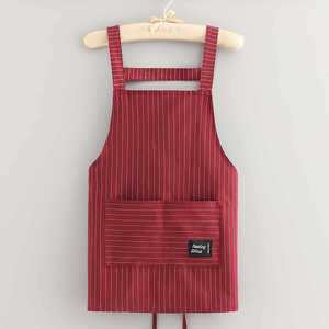 酒红长款条纹棉布背带