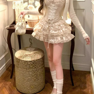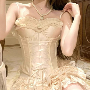 感人间富贵花甜美设计蝴蝶结吊带上衣蓬蓬蛋糕半身裙两件套
