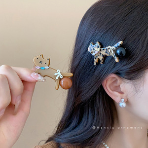 锆石树脂蝴蝶结小猫侧边发夹时尚精致简约百搭鸭嘴夹轻奢小众发饰