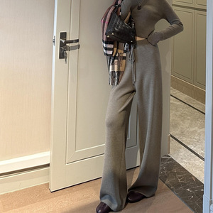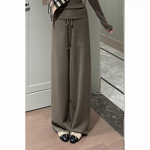 韩系小众针织阔腿裤女2025新款秋冬软糯高级感华夫格气质休闲裤子