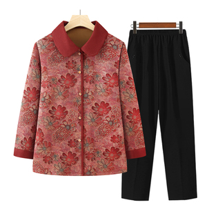 老年人秋装奶奶长袖衬衫套装60岁70老太太衬衣服妈妈翻领上衣外套