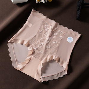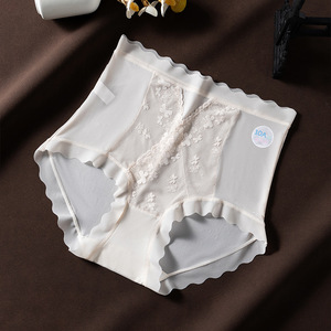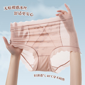 10A抑菌冰丝无痕内裤女高腰蕾丝提臀微收腹加大码桑蚕丝裆三角裤