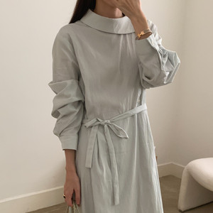 实拍韩版2025秋装新品法式时尚半高领斜扣设计宽松长袖绑带连衣裙