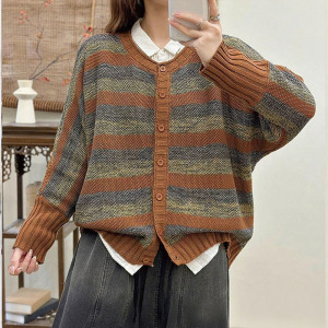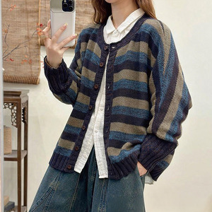 文艺时尚针织开衫女2025春秋季新款圆领长袖宽松加厚短款毛衣外套