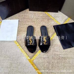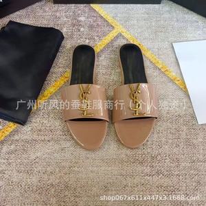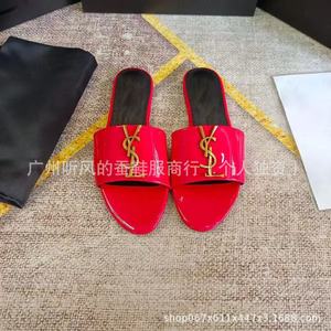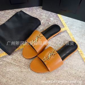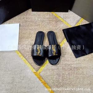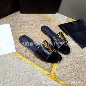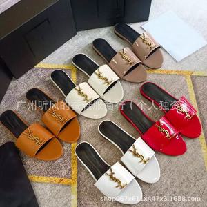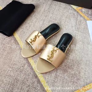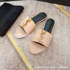 新款ys家金属扣拖鞋女2025字母外穿时尚百搭平底一字沙滩凉鞋秋季