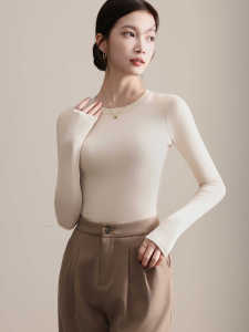 圆领打底衫女士长袖t恤修身显瘦抗菌2025新款春秋季外穿紧身上衣