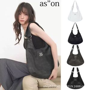 韩国小众ason新款刺绣月牙单肩包甜酷风爆裂纹大容量托特包